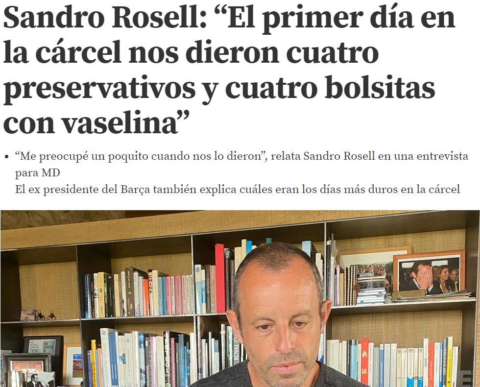 近来,曾因涉嫌洗钱入狱两年的前巴萨主席罗塞尔接受了《世界体育报》的专访,他在这次采访中语出惊人,表示在入狱首日就领到了安全套和凡士林,这一度让他有点害怕。