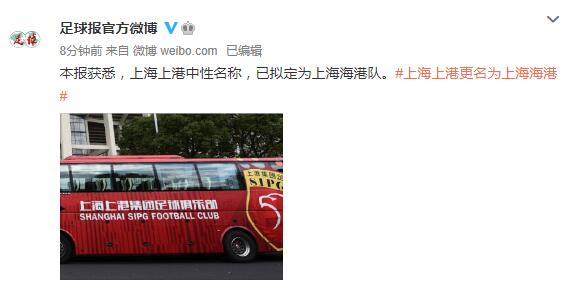 北京时间1月12日,据《足球》报报导,上海上港中性称号已拟定为上海海港队。《足球》报写道:本报得悉,上海上港中性称号,已拟定为上海海港队。