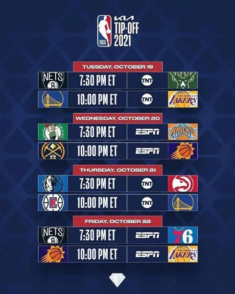 10月20日 7:30 篮网vs雄鹿 10:00 勇士vs湖人
