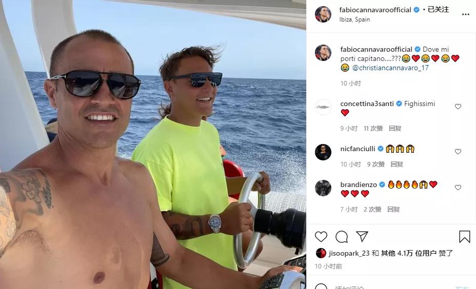 卡帅在结束中超赛程后,立刻回到了意大利和家人相聚。日前他就在社交渠道晒出一张和儿子的合照,他其时光着膀子,站在儿子身旁笑脸满脸,两人正坐在游艇上一同出海,从定位来看,他们正在西班牙的伊比萨半岛休假。