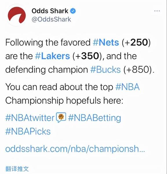 首要这家媒体给出的前三名球队分别是篮网+250,湖人+350以及雄鹿+850,其间篮网的赔率是最高的,比起湖人还要高。其实这并非一个古怪的现象,由于大部分球迷仍是会认为杜兰特、哈登以及欧文组成的三巨子会在竞赛傍边愈加具有优势。如果不是上赛季欧文和哈登接连受伤的话,那么雄鹿也未必能够跨过篮网,更甭说雄鹿最终还拿到了总冠军。至于湖人的话,他们即使具有了三巨子,可是从纸面阵容来看仍是比不上篮网。