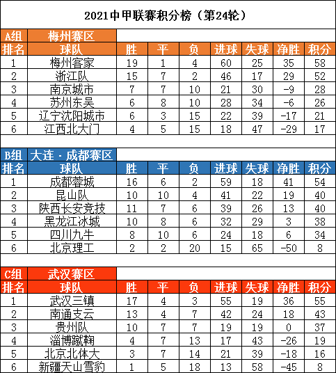 第一阶段:将3个承办地会员协会下属的俱乐部设为东道主队(成都蓉城、梅州客家、武汉三镇),3支种子队通过落位抽签确定落位A、B、C三组,其余15支球队按照2020年联赛排名进行蛇形摆放,直接定位在A、B、C三组,每个组在一个赛区,每个赛区6支球队,进行双循环10轮、共90场竞赛。