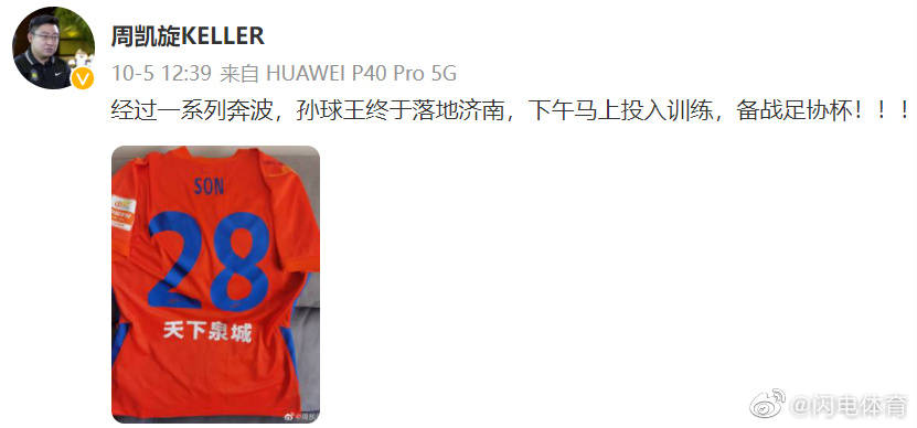 10月5日,泰山队外援孙准浩经纪人在社交平台发布消息,孙准浩已经回到山东泰山队,今天下午随队训练,备战足协杯的比赛。