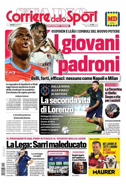 10月5日讯 米兰体育报、罗马体育报、都灵体育报是意大利的三大体育报,今日我们来看看它们各自的头版头条都带来了哪些内容。