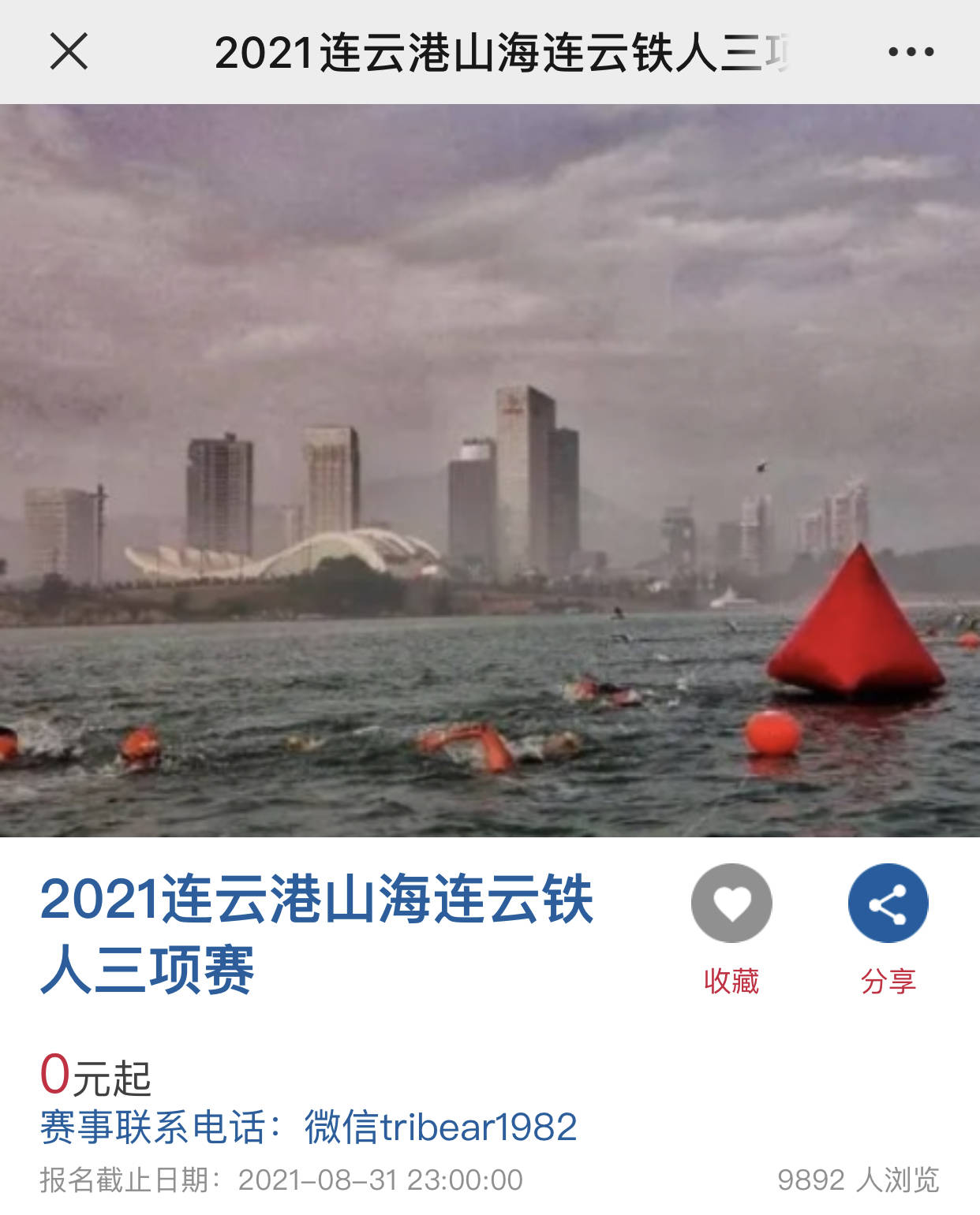 据铁三运动员开岩龙描述,此次赛事包括报名在内的所有信息都是一个链接。链接中的报名时间显现已截止,而联系方式只有一个微信号。