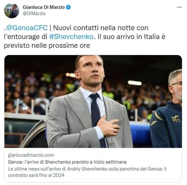 11月6日讯 据迪马济奥最新消息,舍甫琴科执教热那亚的合约现已敲定,他将与这家意甲俱乐部签约至2024年。