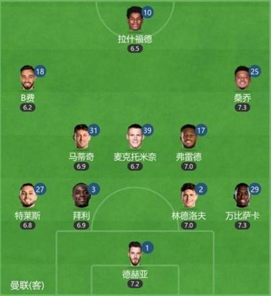 曼联上一轮首发↑
