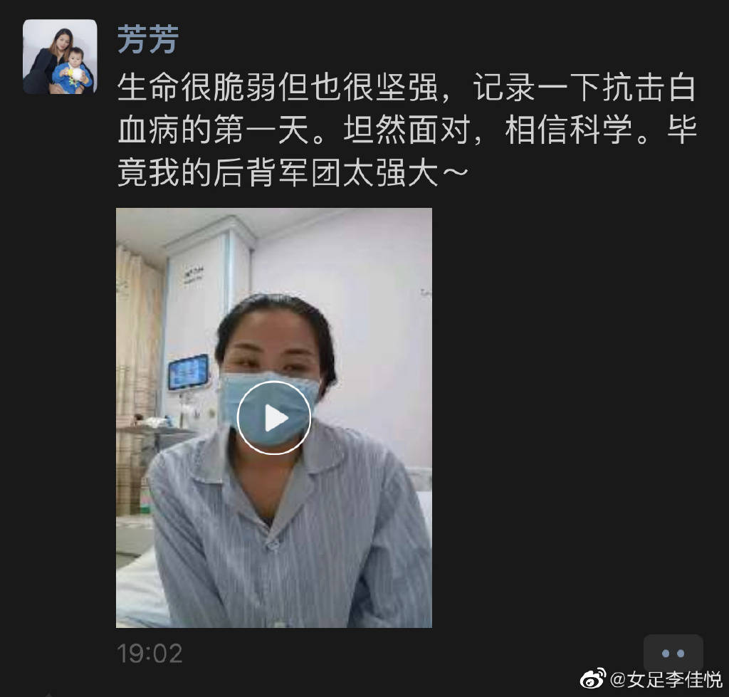 从没想过一同奋战球场十几年的队友会忽然被急性白血病缠身!前几天咱们还一同在球场上并肩作战,今天你却已经住进医院了。在得知确诊的那一刻咱们都哭了,但你还在为接下来的联赛给大家加油鼓劲,你真的很刚强很英勇,你真的是一个好球员,一个好母亲!