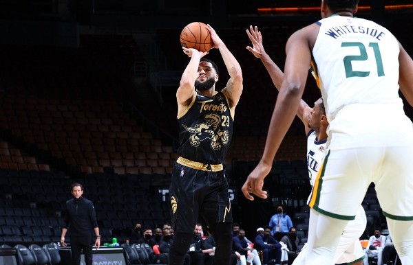 在速龙破爵士一仗的第3节,范列特(fred vanvleet)大爆发,於两分钟内个人包揽15分,在该节最後攻入24分,还抢得3篮板及3次助攻。最後,他全场就贡献了37分,篮板和助攻各10个,是个人职业生涯首次录得三双数据,而且这也是队史三双得分最高的纪录,超越名宿卡达的31分三双纪录。