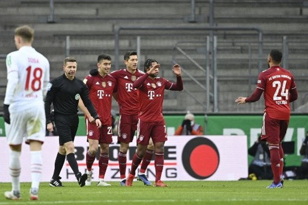 上仗不敌慕逊加柏,拜仁今役在开赛仅9分钟便打破缺口,罗拔接应梅拿的妙传射入,虽然旁证举旗,但var证实这位波兰国脚没有越位,拜仁领先1:0。25分钟,拜仁打快攻,梅拿窝利回传,杜利素控定後射入,拜仁半场领先2球。
