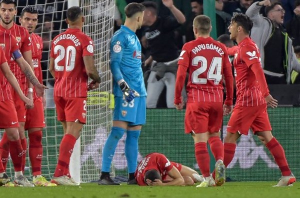 这场国王盃16强比赛,既是塞维利亚打吡战自是气氛激烈,西维尔由阿历亨度高美斯於上半场35分钟射门破网先开纪录,不过贝迪斯4分钟後由锋将法基扳平後,场内即时发生事故,西维尔的祖安佐敦被人用物件掷中,一度倒地,其後再站起来并不似伤势严重。