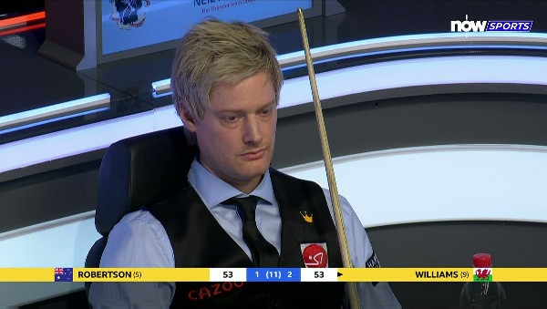 39岁的罗拔臣在比赛中一直处於劣势,局数曾经落後过1:4及3:5,但第9及第10局分别打出一杆95分及119分,追成平手。关键的第11局,威廉斯抢得主动起break打67分领先,罗拔臣要超分反胜必需「set snooker」两次,结果这位世界排名第4位的球手成功令对手罚分,决胜局赢69:67晋级。