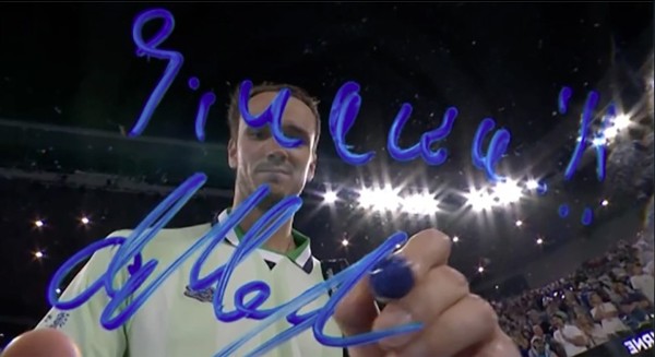 胜方於场内接受完访问後,习惯都会在电视镜头的玻璃或大网球上加上签名,当然麦维迪夫亦有这样做,但他将「sui」字写在镜头加亲笔签名,实行将不满宣泄出来。