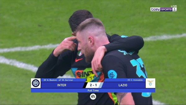 67分钟,史坚尼亚的头鎚贴楣底入网,为国米奠定胜局。赛後,国际米兰20战得49分重登第一,领先多踢1场的ac米兰1分,拉素就以32分排第8位。