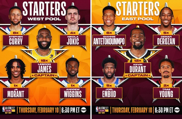 明星赛正选公布 勒邦KD领衔
