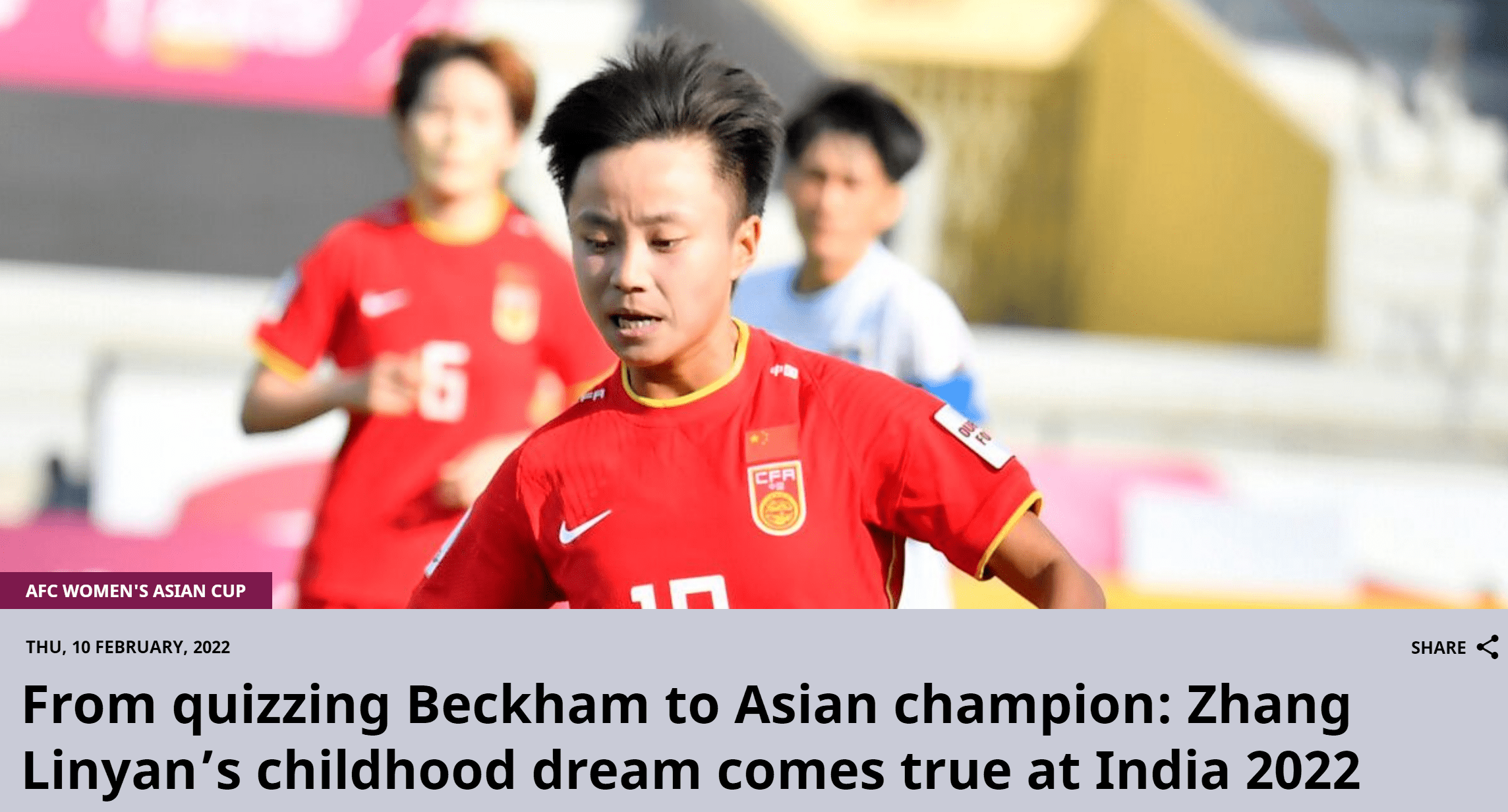 亚足联表明,虽然张琳艳帮助中国女足获得了冠军,可是很少有球迷会知道她与贝克汉姆的故事,就在夺冠后,贝克汉姆也在个人社交平台上,向张琳艳表明了恭喜,贝克汉姆写道:“琳艳,我记得2013年咱们的会面。你通过尽力得到报答,而且实现了自己的愿望,这太棒了。再次恭喜夺冠。”,而张琳艳也快乐的回复表明:“哇,谢谢贝叔还记得我,送我的签名足球还一向收藏在家,我也会继续尽力!”