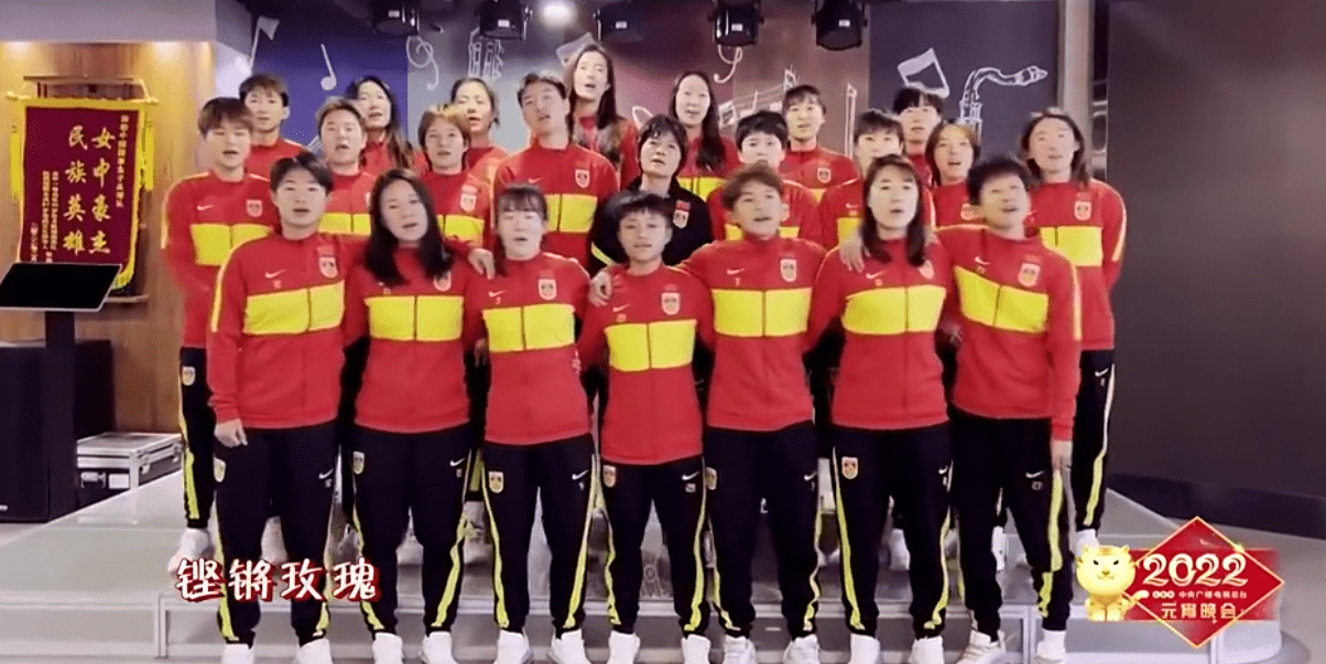 在今晚的央视元宵晚会上,刚刚在亚洲杯夺得冠军的中国女足和尚雯婕、李斯丹妮一起送上歌曲节目《铿锵玫瑰》。中国女足经过云视频录制的方法出现在节目傍边,齐唱了《铿锵玫瑰》,也表达了夺冠的喜悦以及对球迷的感谢,而且表明今后将持续追梦,争夺更多荣誉。