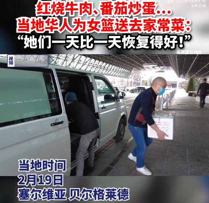 2月20日上午,东方网·纵相视频联系上几位在塞尔维亚的华人,当地中餐馆的老板余先生告知记者,当地华人组成了小分队,每天会给女篮姑娘们送去一些家常菜和日子物资,“今天有红烧牛肉,西红柿炒鸡蛋还有大虾等家常菜,咱们感觉很侥幸,都是应该做的!”余先生告知纵相视频,据他了解,女篮姑娘们的状况一天比一天好,日子方面都有保证,咱们能够定心。