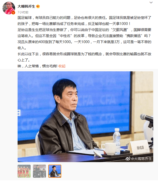 国足输球,有球员自己能力的问题,足协也有很大的责任。国足球员便是被足协宠坏了的孩子,把每一场比赛都当成了使命来完成,反正输球也能一天拿1000!