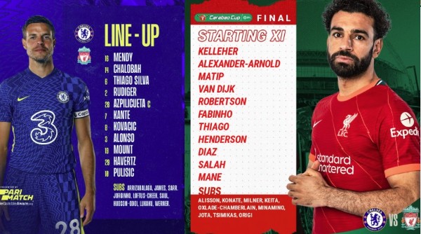 周日英联盃决赛,车路士以哈伐斯任单箭头,利物浦则派出沙拿、沙迪奥文尼及路尔斯迪亚斯负责攻坚。