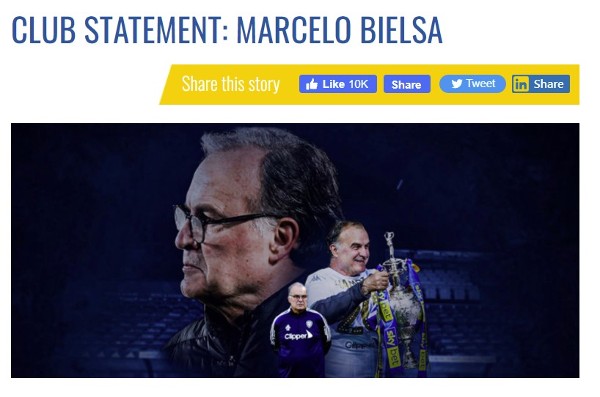 「比尔沙出任列斯联领队後,球会经历了3个令人难以置信的赛季,令美好时光回到艾兰路球场。他改变了球队的文化,引入争胜心态,2019/20球季带领球队重返英超的时刻,毫无疑问会长留在本人及球迷的美好回忆。」