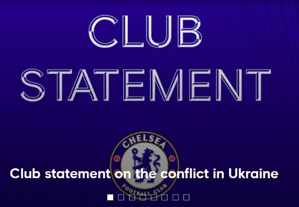 俄罗斯对乌克兰展开军事行动之後,车路士终於开腔,在官网中发表声明,但内容明显模棱两可:「乌克兰的局势可怕,而且非常毁灭性。车路士此刻与乌克兰的每个人同在,球会上下都会祈求和平。」内文只有24个字,极为简洁之余亦没有提及任何有关班主阿巴莫域治(roman abramovich)的消息。