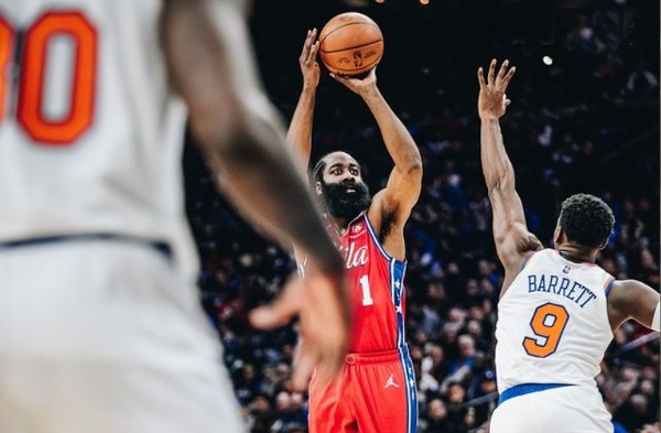 76人正选5人全部得分上双,当中有3人达25分或以上,包括祖奥安碧贡献了27分及12篮板,夏登有26分、9篮板及9助攻,而全场射入4球三分的泰域斯麦斯,则攻入25分。纽约人方面,巴拉特虽有30分进帐,全场最高,但独力难支。