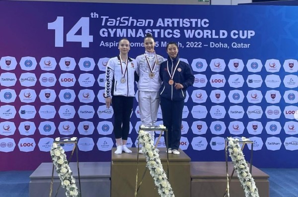 香港体操代表黄晓盈在体操世界盃多哈站平衡木决赛,以总分12.333分摘下铜牌。