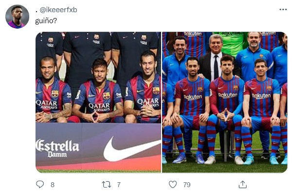 巴塞的全家福出炉,手势与众不同的碧基(gerard piqué),引起网民广泛讨论。
