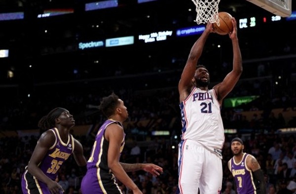 76人胜出,祖奥安碧与夏登联手贡献54分,李华士(doc rivers)赛後反对对手有微言,质疑占士诈伤:「球员拣比赛轮休,球迷就难过。特别是来到现场的人,今天肯定有某个孩子第1次来到湖人主场,想看勒邦占士比赛,可惜他不在场。」