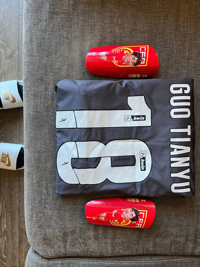北京时间4月5日音讯,昨晚,目前租赁在葡超维泽拉的山东泰山队前锋郭田雨在个人交际媒体上晒出自己的竞赛装备,以及在葡萄牙的日子日常。