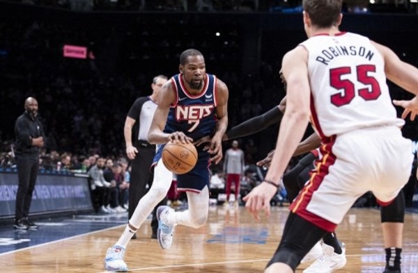 杜兰特全场21投10中,取得31分、4篮板及4助攻,但亦有3次失误,其中包括一记可让篮网领先的三分球。结果热火反凭巴姆艾迪巴约贡献30分、11篮板的双双,在主力占美毕拿、罗利休战下仍以113:107向篮网赠上3连败。