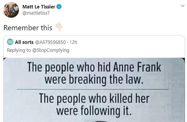 对於俄罗斯军队在乌克兰首都基辅市郊布哈镇大屠杀,修咸顿名宿拿铁斯(matt le tissier)在社交网站上提出质疑,认为传媒夸大报道,加上之前对疫苗和美国总统拜登的态度,令人议论纷纷。