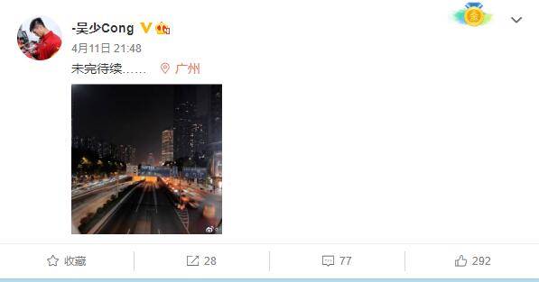 昨夜,吴少聪也更新了交际媒体,他发布了一张广州的图片,并配文:未完待续,暗示自己或许留在广州队。