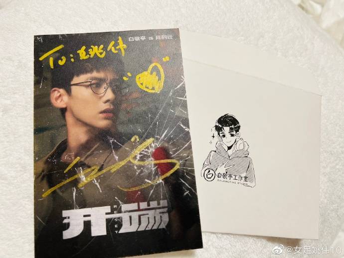 北京时间4月15日晚,中国女足队员姚伟在个人社媒上晒出了自己收到的演员白敬亭的签名照。