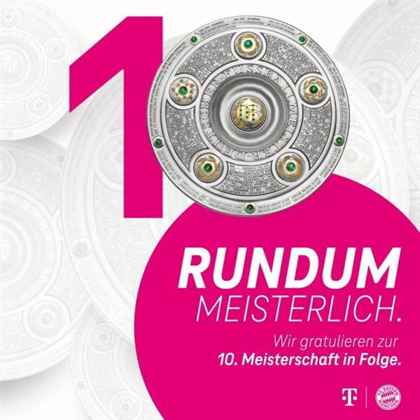 赛后拜仁的主赞助商德国电信发文祝贺:多么巨大的杰作!很自豪作为拜仁的主赞助商,祝贺他们接连十个赛季取得冠军头衔。咱们已在等待与你共度下一个十年。