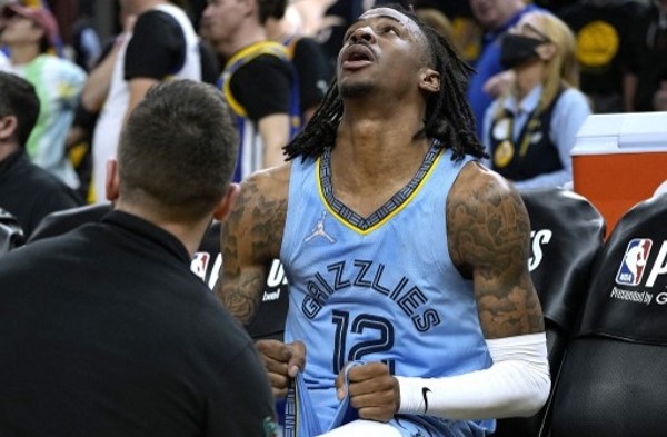 赞摩兰特(ja morant)在尾段被2名勇士球员夹击,遭佐敦普尔用右手扯伤膝盖,结果因伤提早离场。灰熊失去了上阵36分钟取34分的他,返魂乏术,以30分大败予有史提芬居里、卡里汤臣合轰51分的勇士。