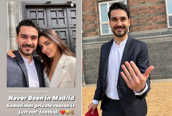 曼城中场根度简与Sara Benamira公布婚讯的同时,还澄清了飞到马德里倾转会的传言。