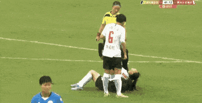 陕西女足球员王芦荟在第41分钟的一次射门之后倒地不起,并且在通过队医的治疗之后仍无法起身。本应承担运送受伤球员下场使命的担架迟迟没有出场,陕西队的队医终究不得不以公主抱的姿态将王芦荟抱下场。
