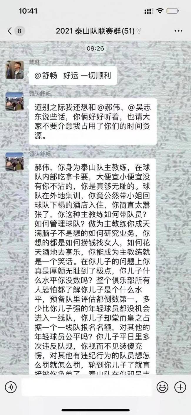 北京时间5月18日,网传山东泰山领队酣畅炮轰主帅郝伟捞钱找女人,《红星新闻》记者致电采访了山东泰山沙龙的一位高层人士,对方表示,酣畅所说的内容并不事实,目前沙龙正在研讨处理方式。