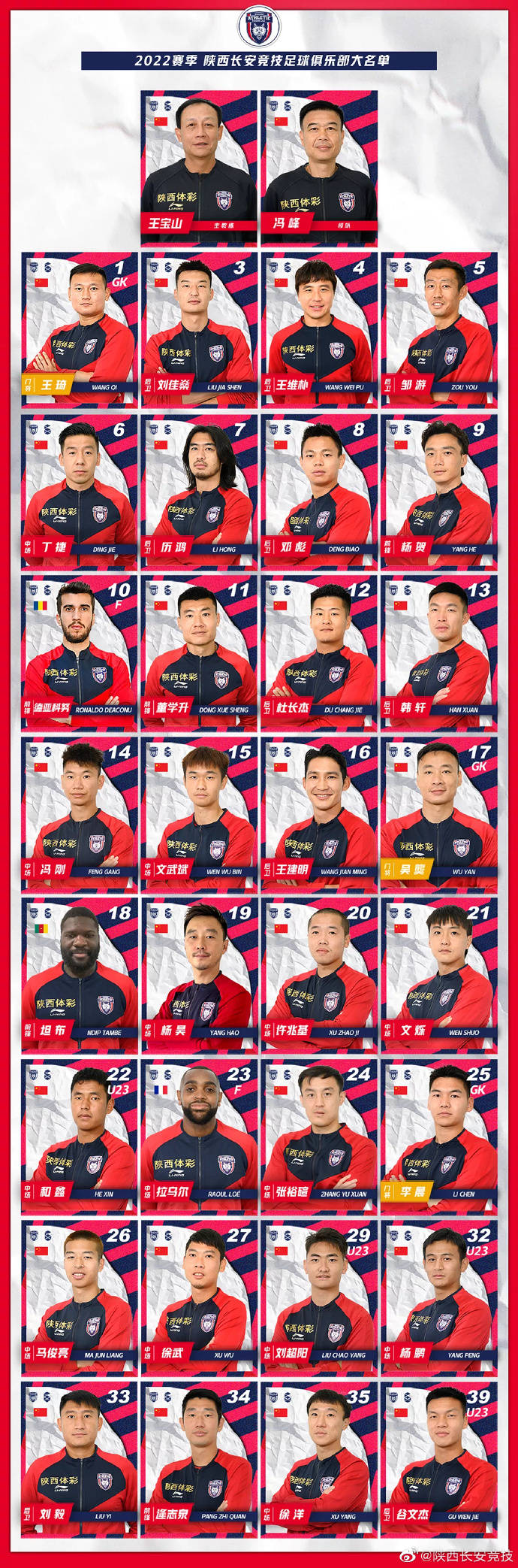 北京时间5月19日,中甲球队陕西长安竞技发布了新赛季大名单、全家福和定妆照。