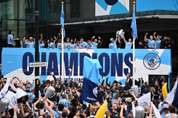 曼城在周日英超煞科战以3:2反胜阿士东维拉,成功卫冕英超,近5季第4度封王。翌日立即举行胜利巡游,一众球员、领队、助教们乘坐开篷巴士,在曼彻斯特接受数以千计的球迷欢呼。