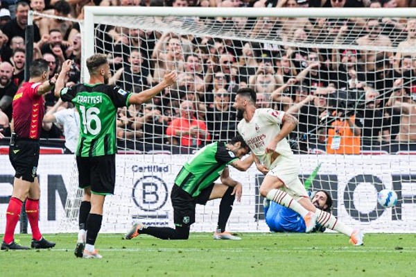 ac米兰17分钟已先拔头筹,由基奥特(olivier giroud)在12码点接应里奥的传送左脚撞射,对方门将挡到也无法阻止皮球入网。踢到32分钟,又是这个前线拍档的合作,同样是里奥在左路底线传中,给基奥特门前执鸡射入,领先至两球。