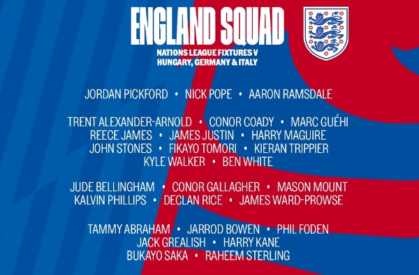 英格兰将於5月30日在圣佐治公园进行首课操练,下月将参战欧国联,在a3组将对战德国、意大利,以及主客两斗匈牙利。