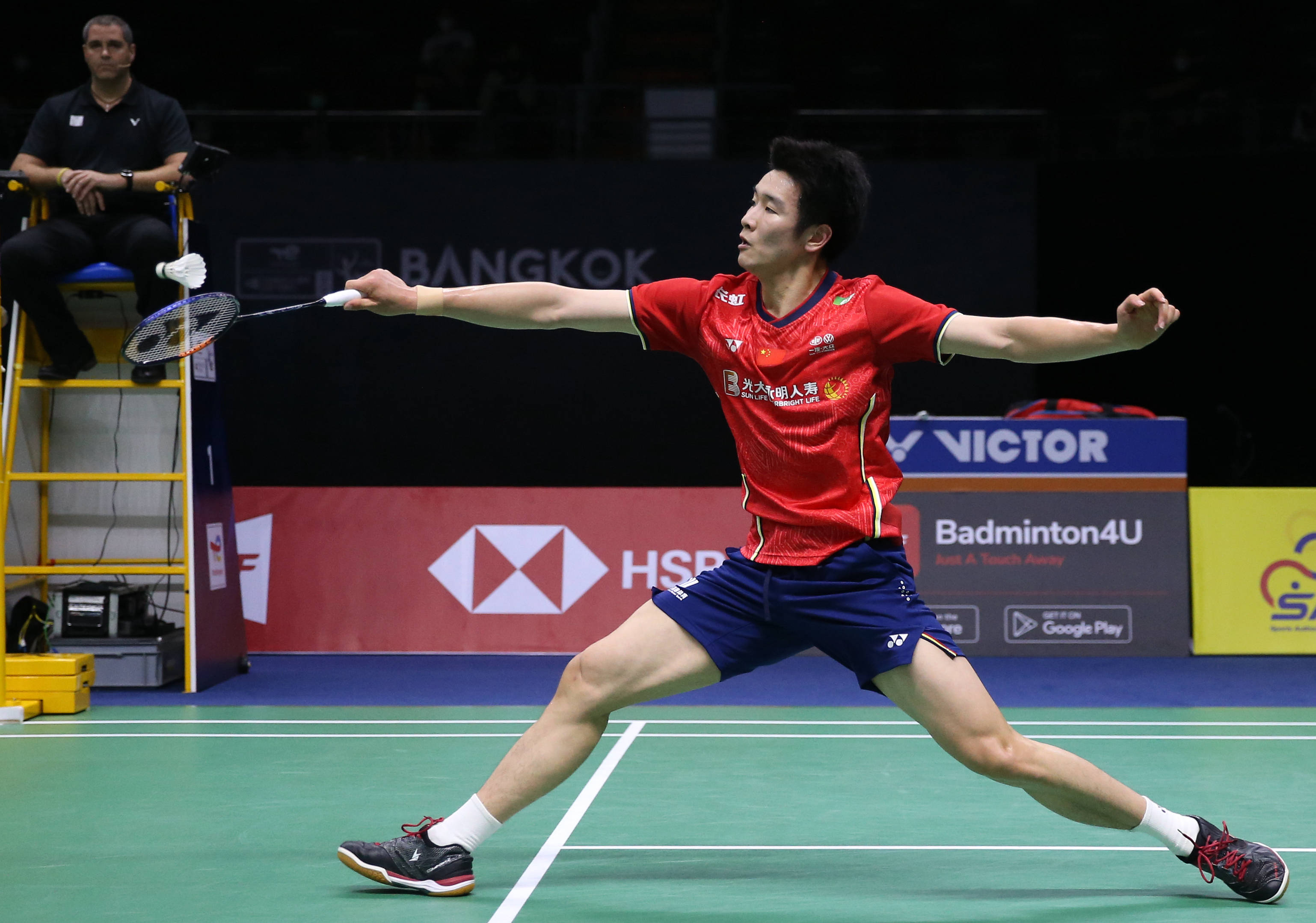 第三场单打竞赛由国际排名第50位的李诗沣对阵国际排名第八的乔纳坦·克里斯蒂。榜首局乔纳坦21:13取胜,第二局两边比分你追我赶,但最终李诗沣还是以18:21负于对手。