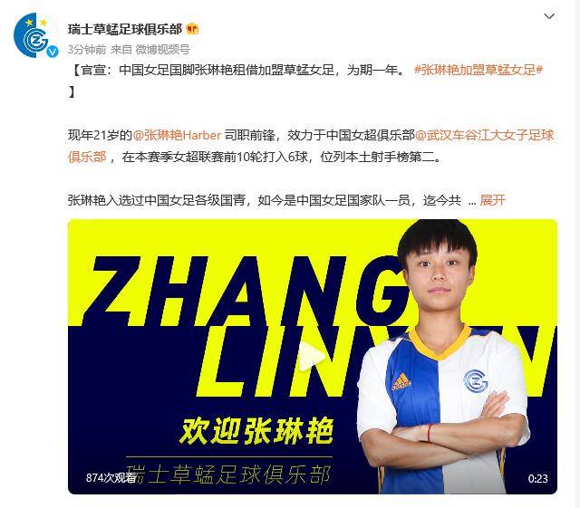 北京时间7月8日,瑞士草蜢足球俱乐部官方宣布,中国女足国脚张琳艳租借加盟草蜢女足,为期一年。