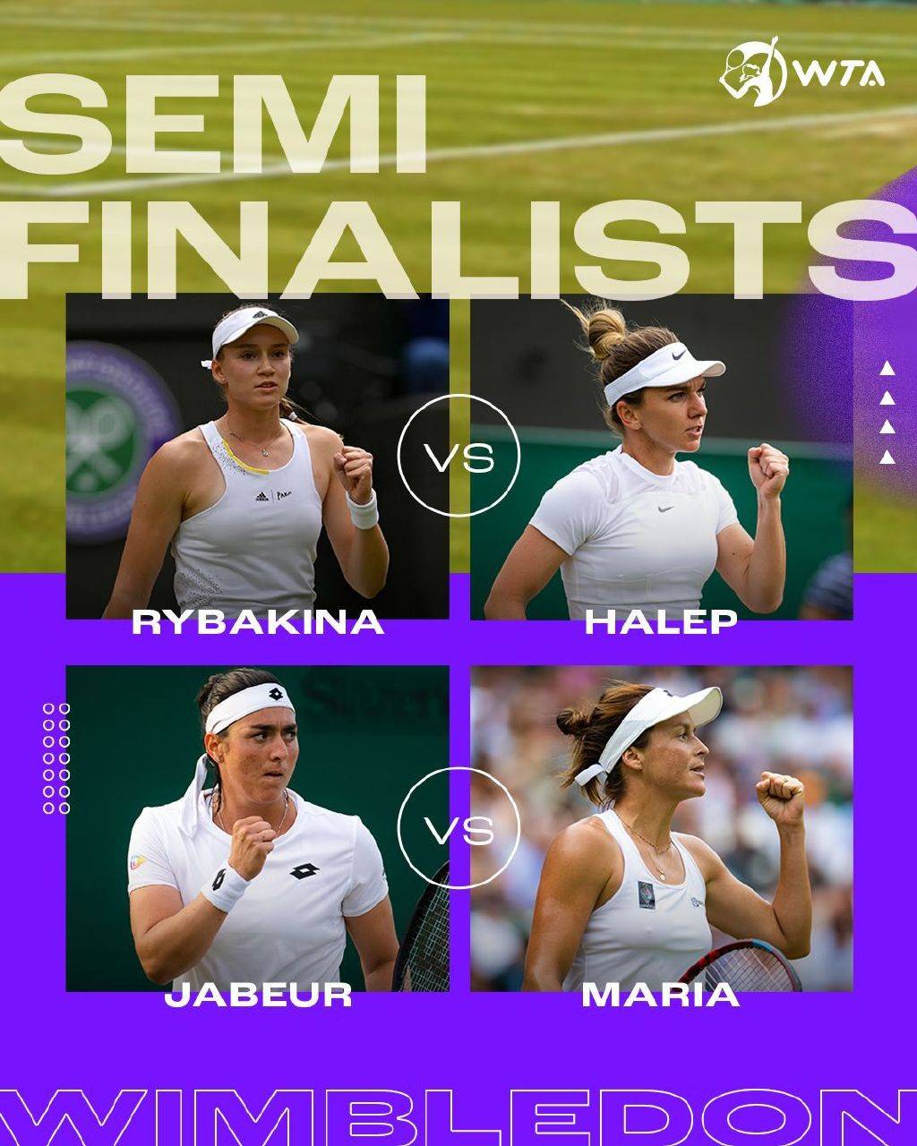 本届温网女单半决赛两组对阵也全部出炉,莱巴金娜将对阵罗马尼亚名将哈勒普,而贾巴尔将对阵玛利亚。一位前温网冠军,三位新晋大满贯四强,你最期待谁的精彩表现?