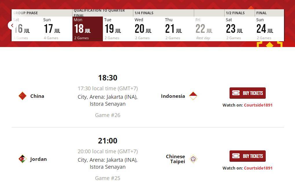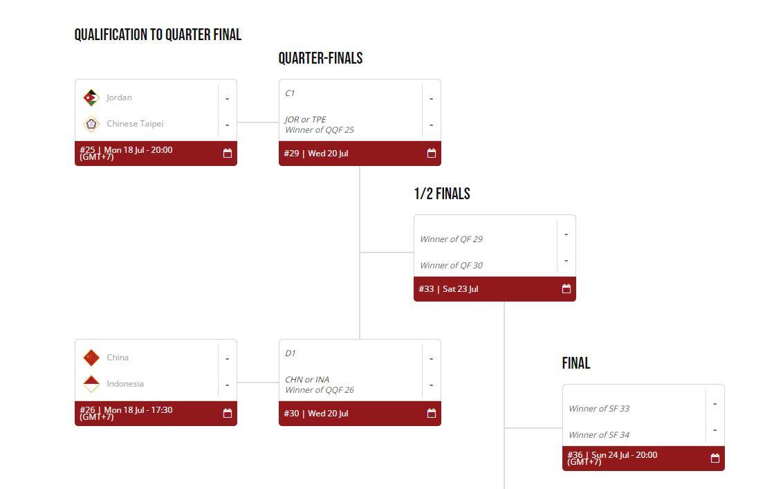 根据官方更新的晋级图显示,中国与印尼的比赛将于当地时间17:30举行