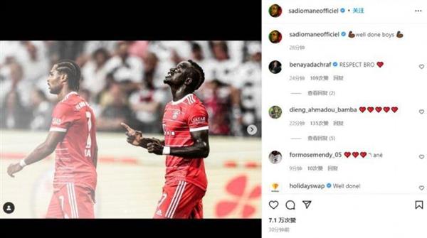 马内晒出自己庆祝进球的照片,并表示:“干得不错,小伙子们。”