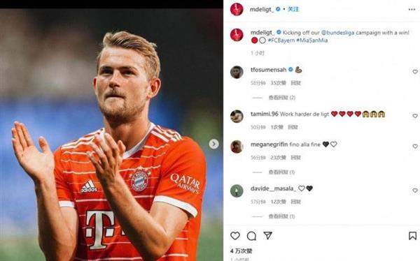 8月6日讯 拜仁在德甲首轮作客6-1大胜法兰克福,几位新援也在赛后相继发文纪念德甲首秀。